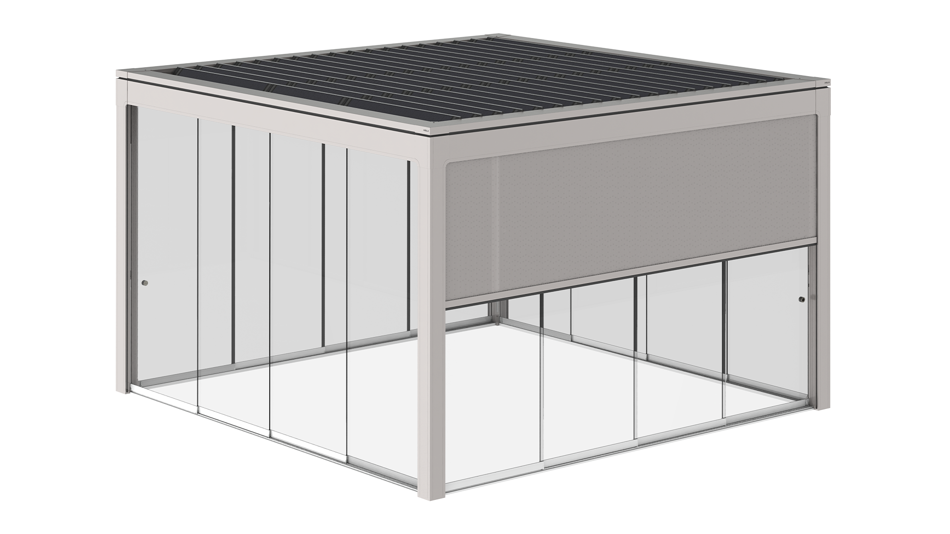 Die VENTUR SUN verbindet durchdachtes Design mit intelligenter Energiegewinnung und wird so zum Terrassenkraftwerk. Durch integrierte Photovoltaik in den Lamellen entsteht die perfekte Kombination aus Funktionalität, Komfort und Nachhaltigkeit. Genau wie die VENTUR ONE fügt sich auch die VENTUR SUN mit ihrem minimalistischen Design und ihrer eleganten Formensprache harmonisch in unterschiedliche Umgebungen ein.